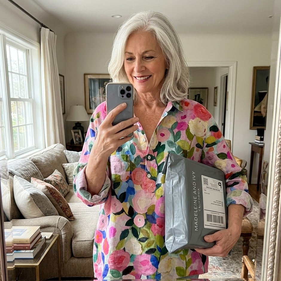 There is a particular kind of morning where the outfit comes together before you have even thought about it. The blouse goes on, the print does its work, and whatever is on the bottom — the jeans, the white trousers, the simple skirt — suddenly looks chosen rather than grabbed. Lightweight enough for a warm afternoon on the patio, long-sleeved enough for the air-conditioned restaurant, and cut to follow without clinging — the kind of piece that makes the woman in the photo look exactly the way she feels inside.